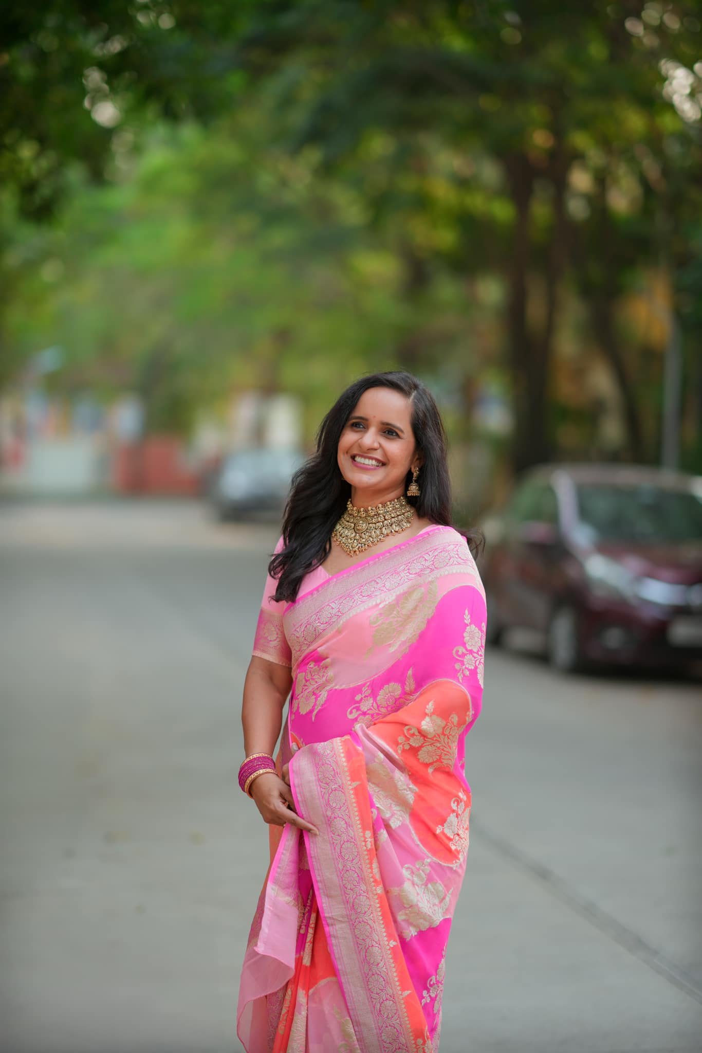 A stunning blend of heritage and artistry, this khadi georgette Banarasi saree features exquisite heavy jaal weaving across the body. Crafted in the vibrant rangkat concept, the saree showcases seamless colour transitions with a rich, luxurious drape. Perfect for festive occasions, weddings, and statement celebrations with a touch of tradition.