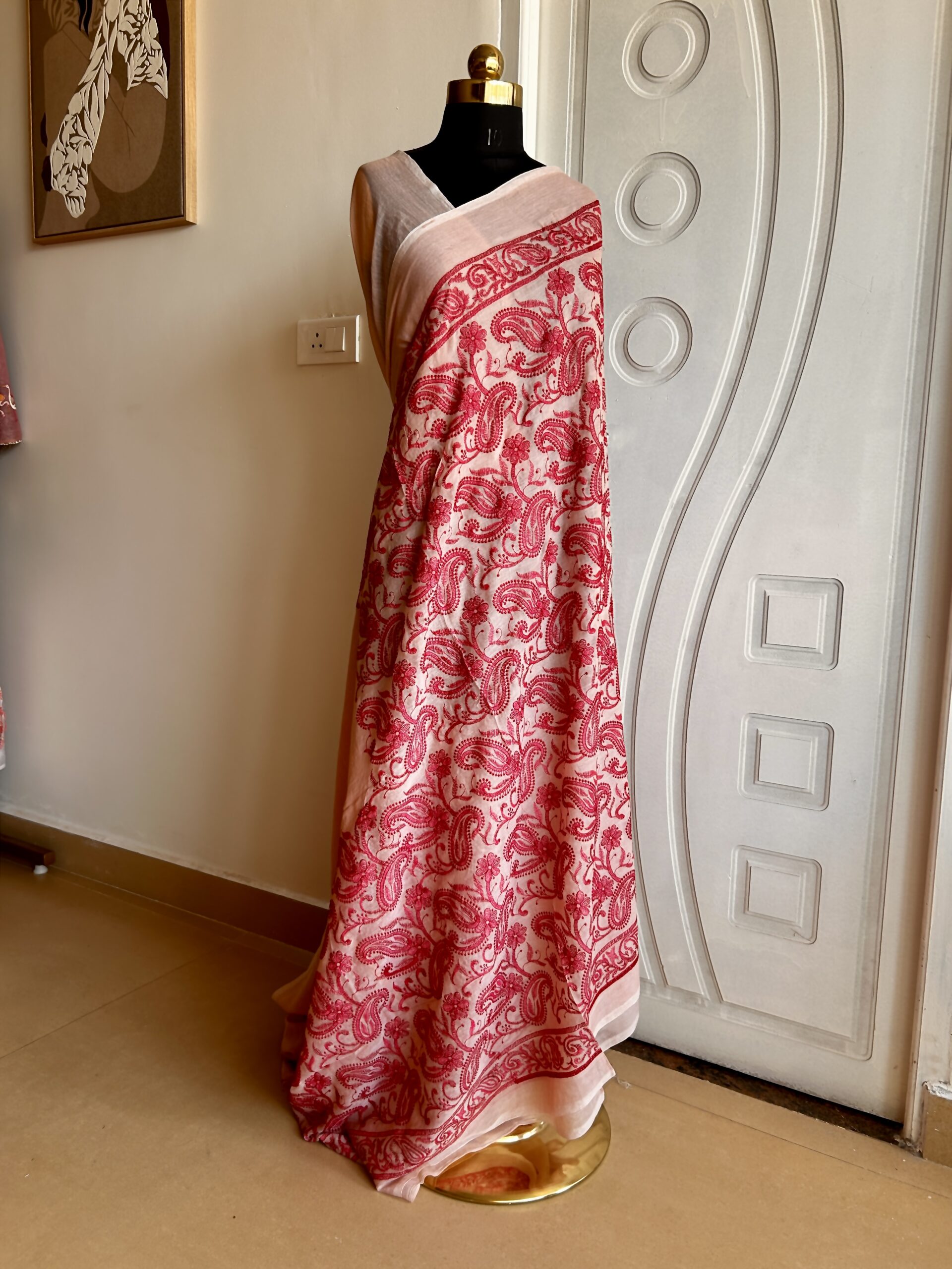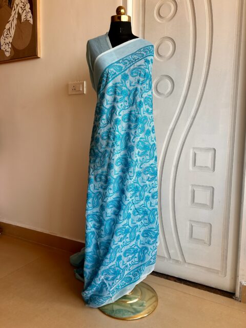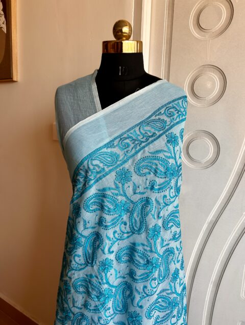 Experience timeless elegance with this exquisite mul cotton handloom saree, beautifully adorned with intricate Chikankari embroidery. Crafted in breathable, feather-soft mul cotton, the saree drapes effortlessly, making it perfect for all-day comfort. The delicate hand-embroidered paisley and floral motifs add a touch of refined artistry, while the subtle border enhances its graceful appeal without overpowering the design.