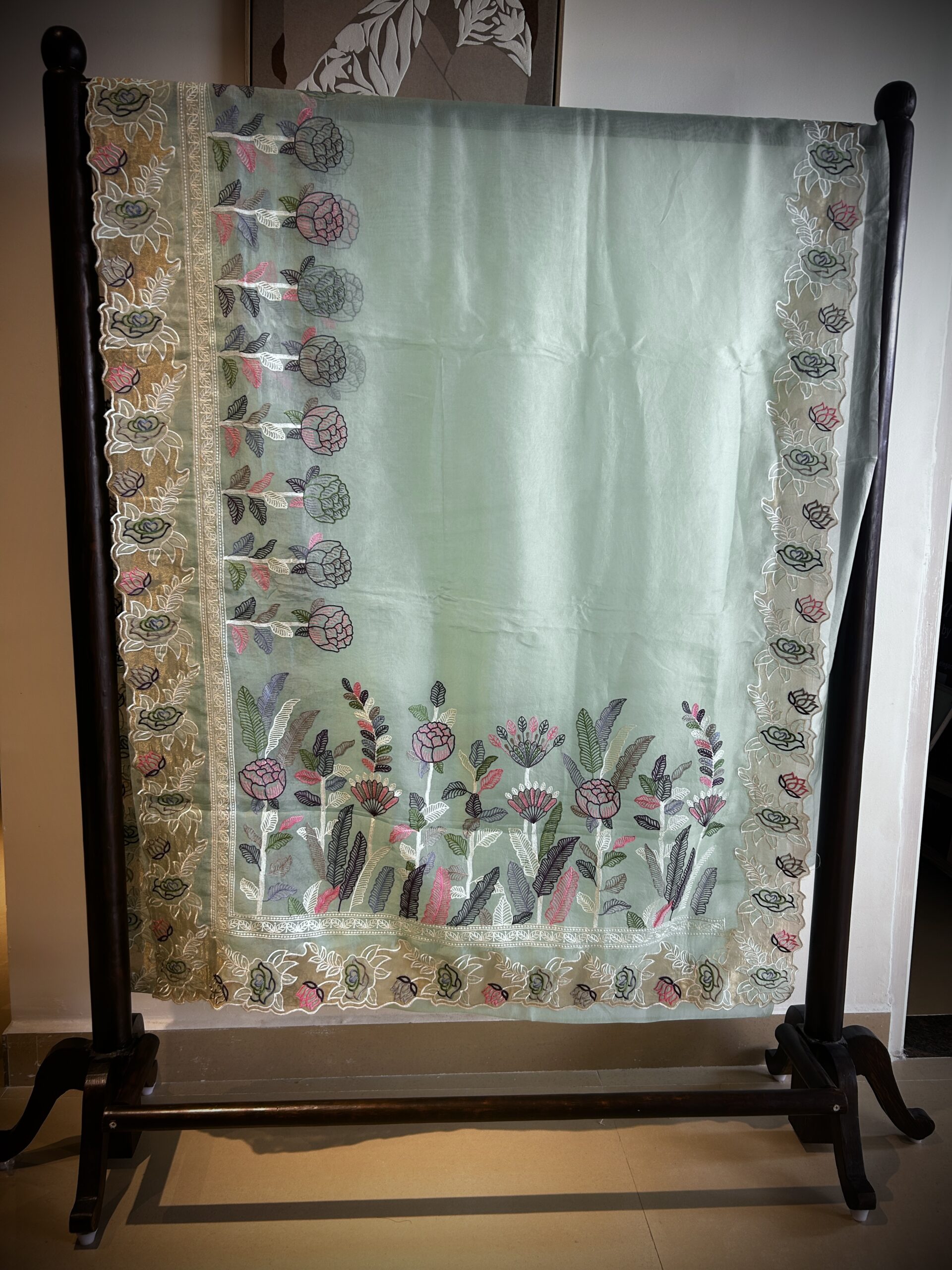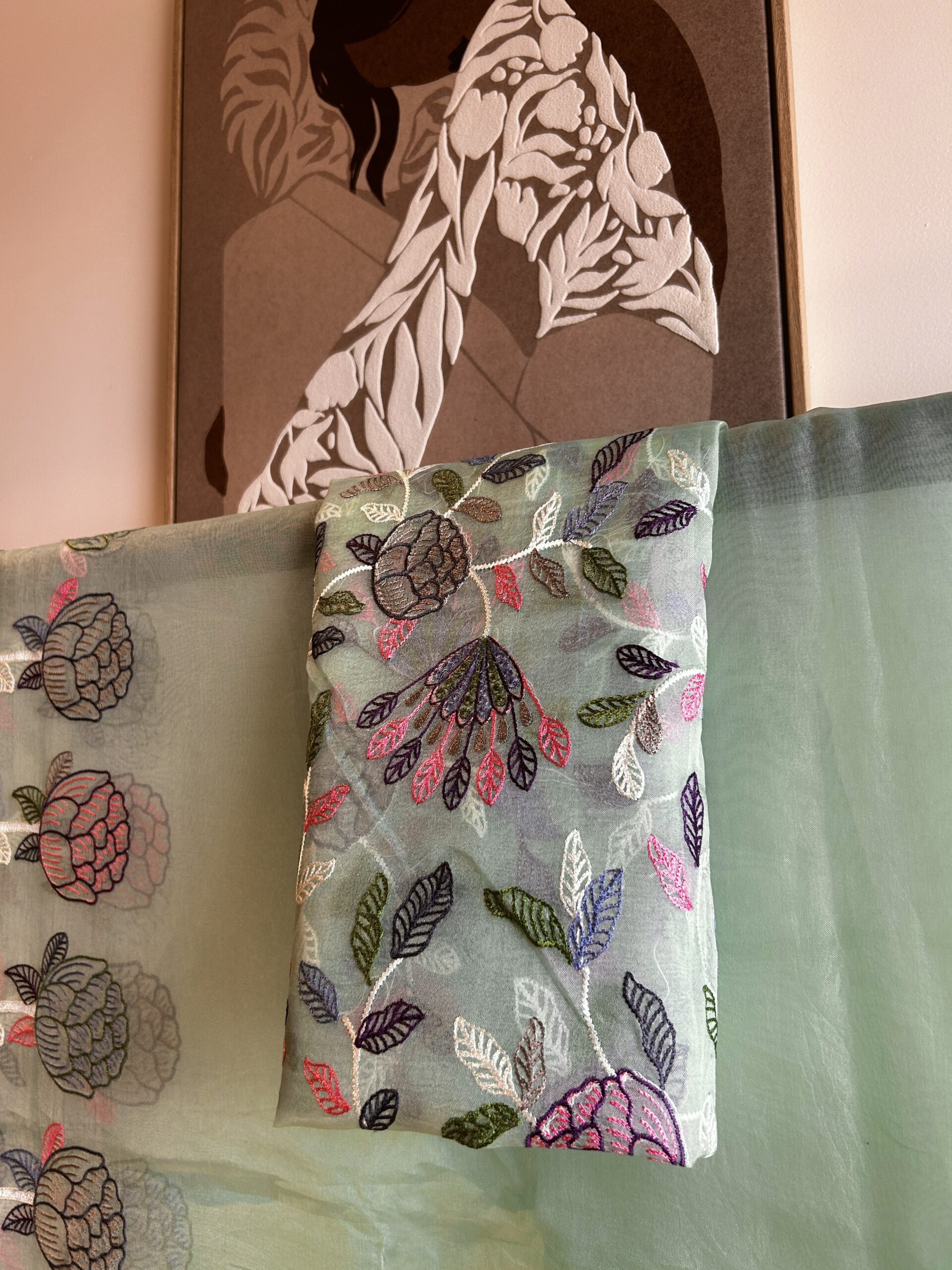 Be the first to review “Organza Thread Work Pearl Green Saree”