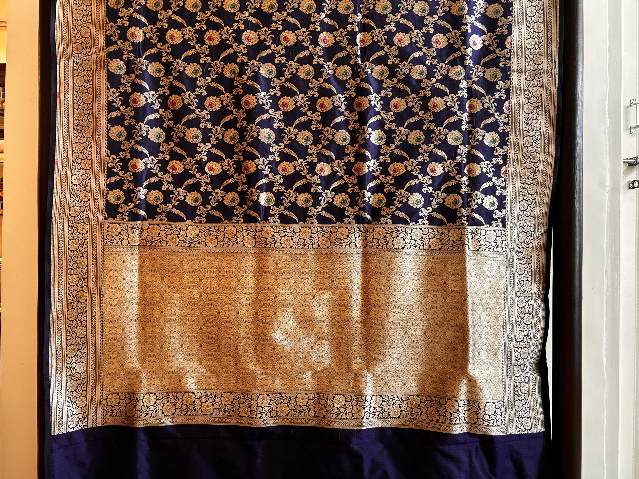 • Pure Banarasi Katan silk with a premium lustrous finish