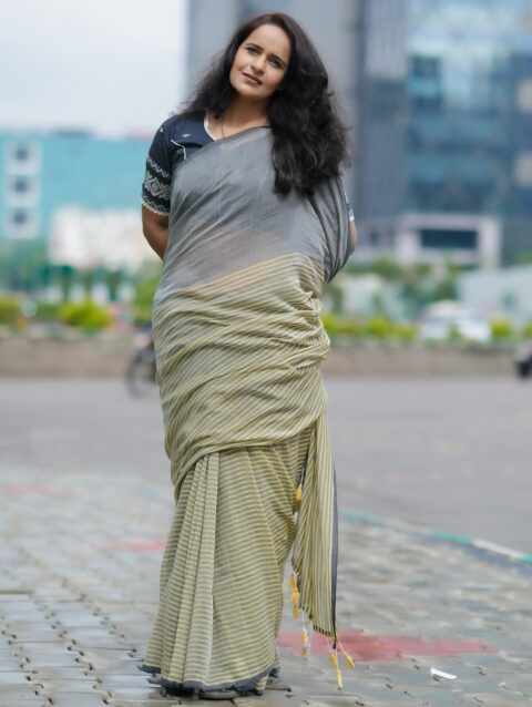 Feather-Soft comfort, effortless elegance! Wraps oneself in the gentle embrace of pure mul cotton, known for its feather-light texture and airy comfort. Handcrafted with care, this saree flows gracefully and feels incredibly soft against the skin-pertect warm climates and long days!